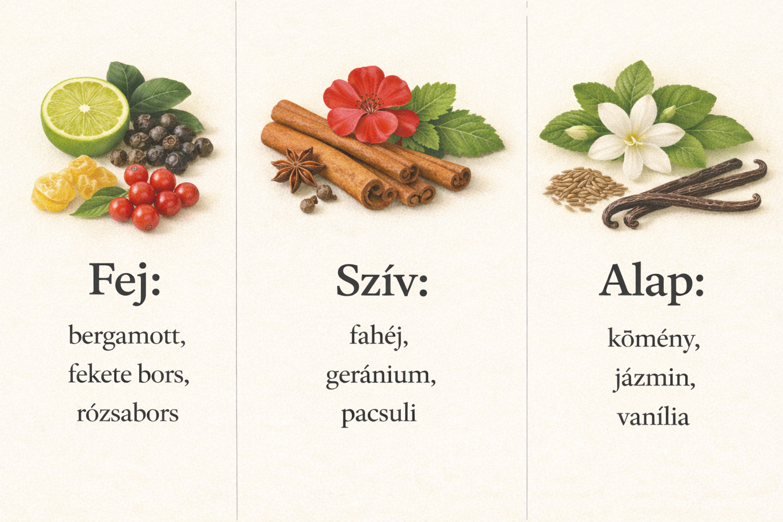 Az Auraa Desire Black Onyx egy markáns, fűszeres-ámbrás karakterű illat, amely friss-citrusos lendülettel nyit. A bergamott tiszta fényét rögtön megfűszerezi a rózsabors és a fekete bors, így az indítás energikus és férfiasan határozott. A szívben a fahéj meleg tónusa találkozik a pacsuli földes mélységével, amit a geránium enyhén zöldes, elegáns frissessége kerekít. A lecsengésben a vanília lágy krémessége és a jázmin finom virágossága egy különleges, fűszeres köményes árnyalattal kap extra karaktert. Összhatásában intenzív, magabiztos illat, ami hűvösebb időben és esti alkalmakra különösen jó választás.