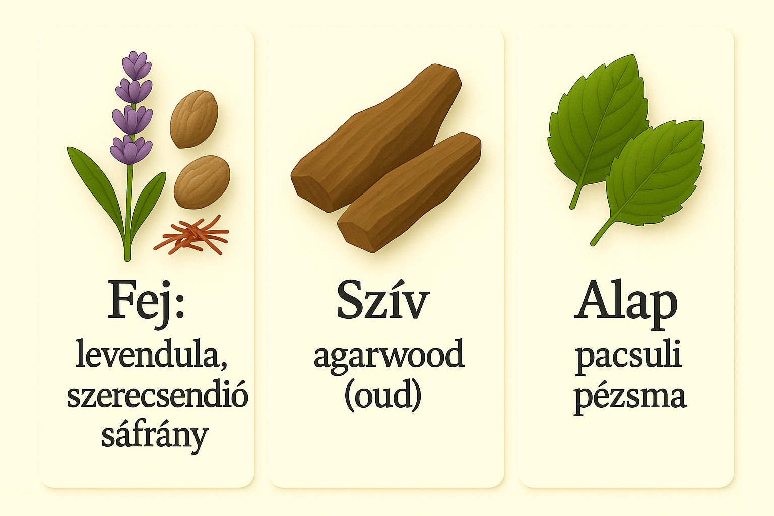 Fej: Levendula, szerecsendió, sáfrány