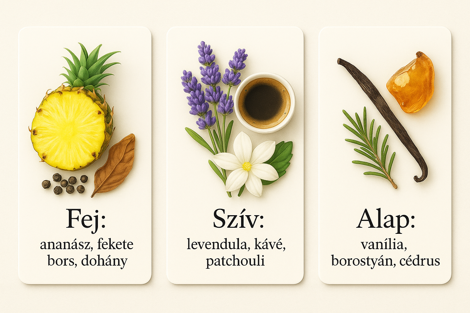 A Lattafa Asad illatának nyitányában markáns, fűszeres elemek tűnnek fel: fekete bors, dohány és ananász adnak karaktert és egyedi bevezetést. A szívjegyekben a kávé, pacsuli és írisz finom elegye hozza a krémes, enyhén földes középrészt, amely átvezet a mély, hosszan tartó alapjegyekbe. Az alapban a vanília, borostyán, száraz fa, benzoin és labdanum keveredése teremti meg azt a meleg, édes és kissé balzsameleganciát, amely a Lattafa Asad-t emlékezetessé teszi.