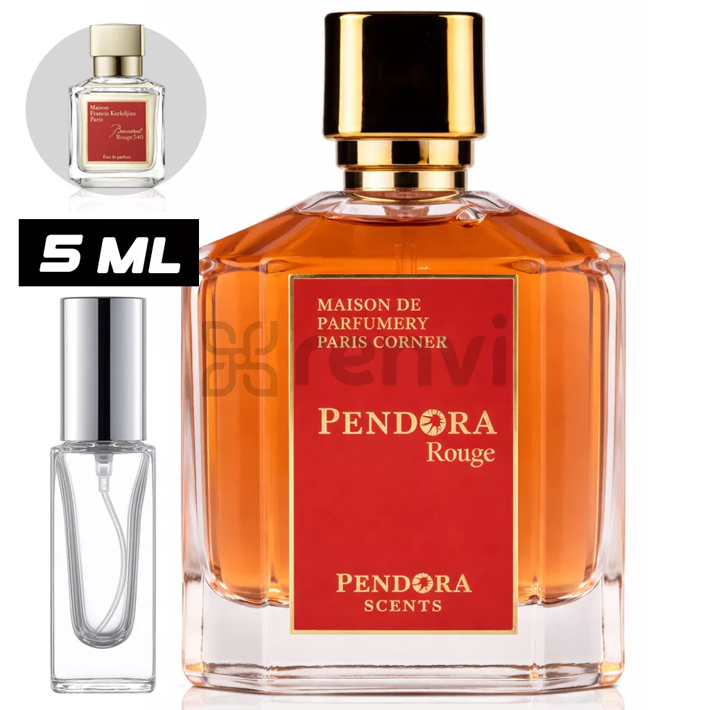 A Pendora Rouge (Pendora Scents / Paris Corner) egy elegáns, „ragyogó” uniszex illat, ami keserű mandulás–sáfrányos nyitással indít: egyszerre fűszeres, enyhén édeskés és nagyon karakteres.