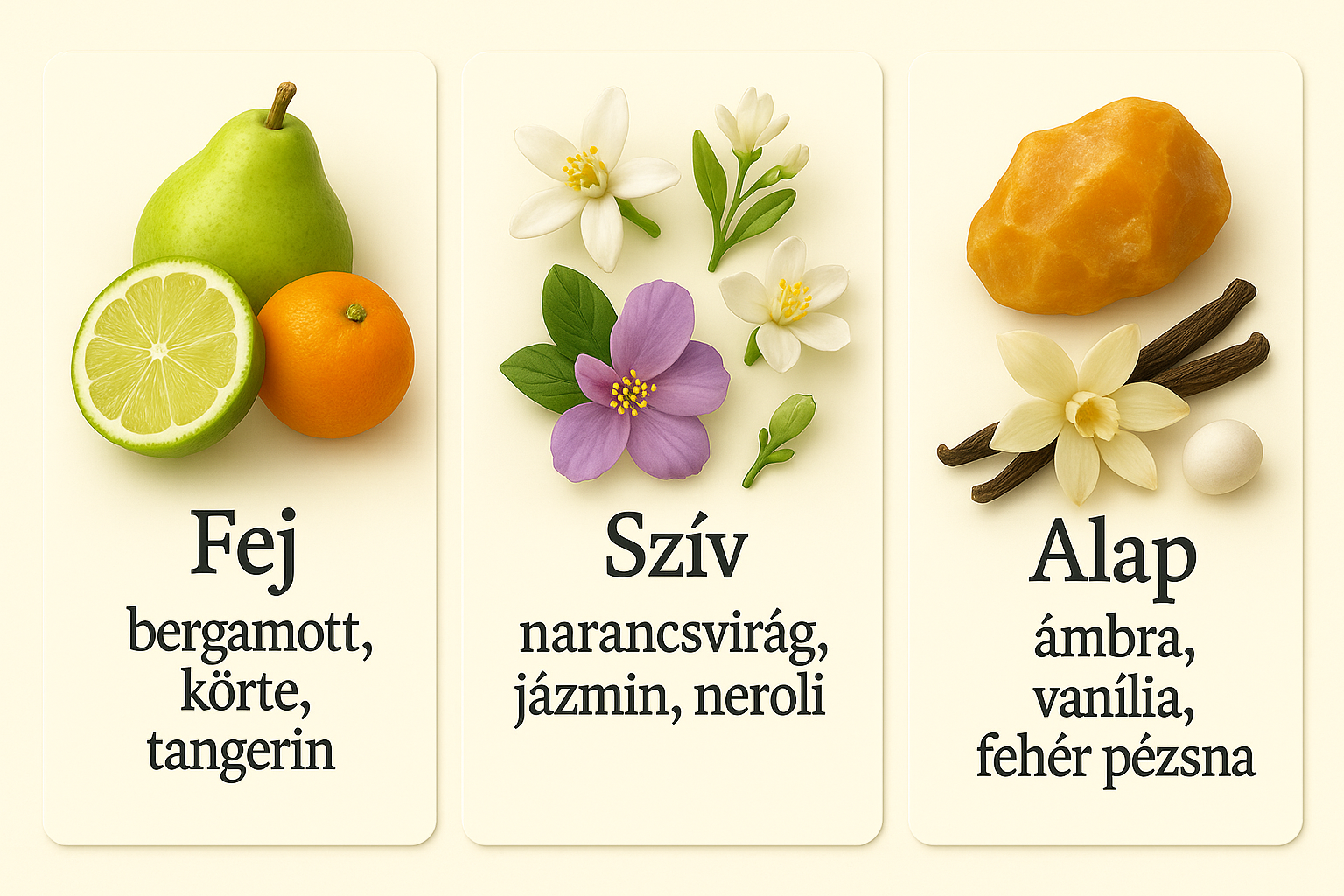 Fej: Bergamott, körte, tangerin